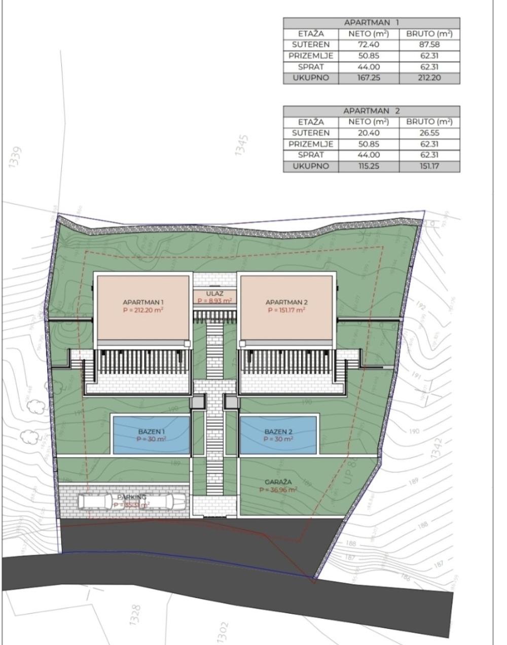 Ukupna povrsina vila bruto 363m2 ukupna povrsina placa 888m2.
